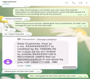 我是你的任务导师,我不会伤害你。这位成员也是新人。在我的指导下,他顺利完成了任务,并提现到账户上。并再次请求申请新的任务继续赚钱,你只需要按照我的指示完成任务,完成任务提现后,我会帮你继续申请高佣金任务,赚更多的钱。